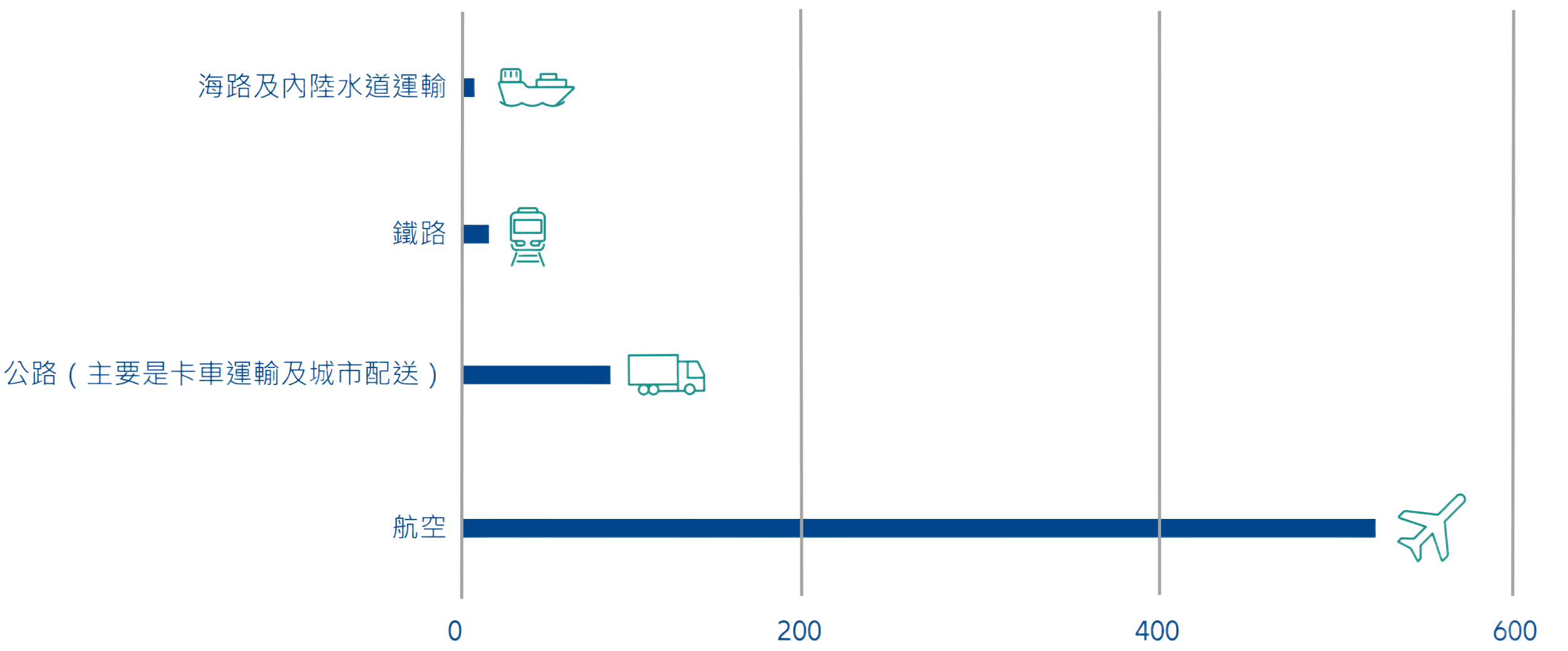 2020年環球貨運的碳排放密度(每十億公噸公里(千克))