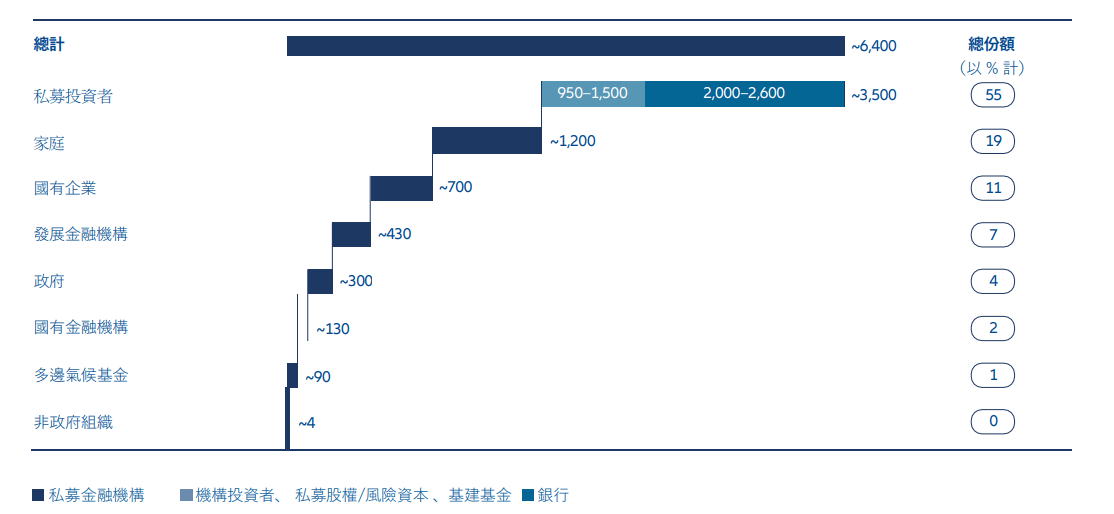 圖 2:私募金融機構可為約55%的淨零投資需求提供資金 (2022–2050)